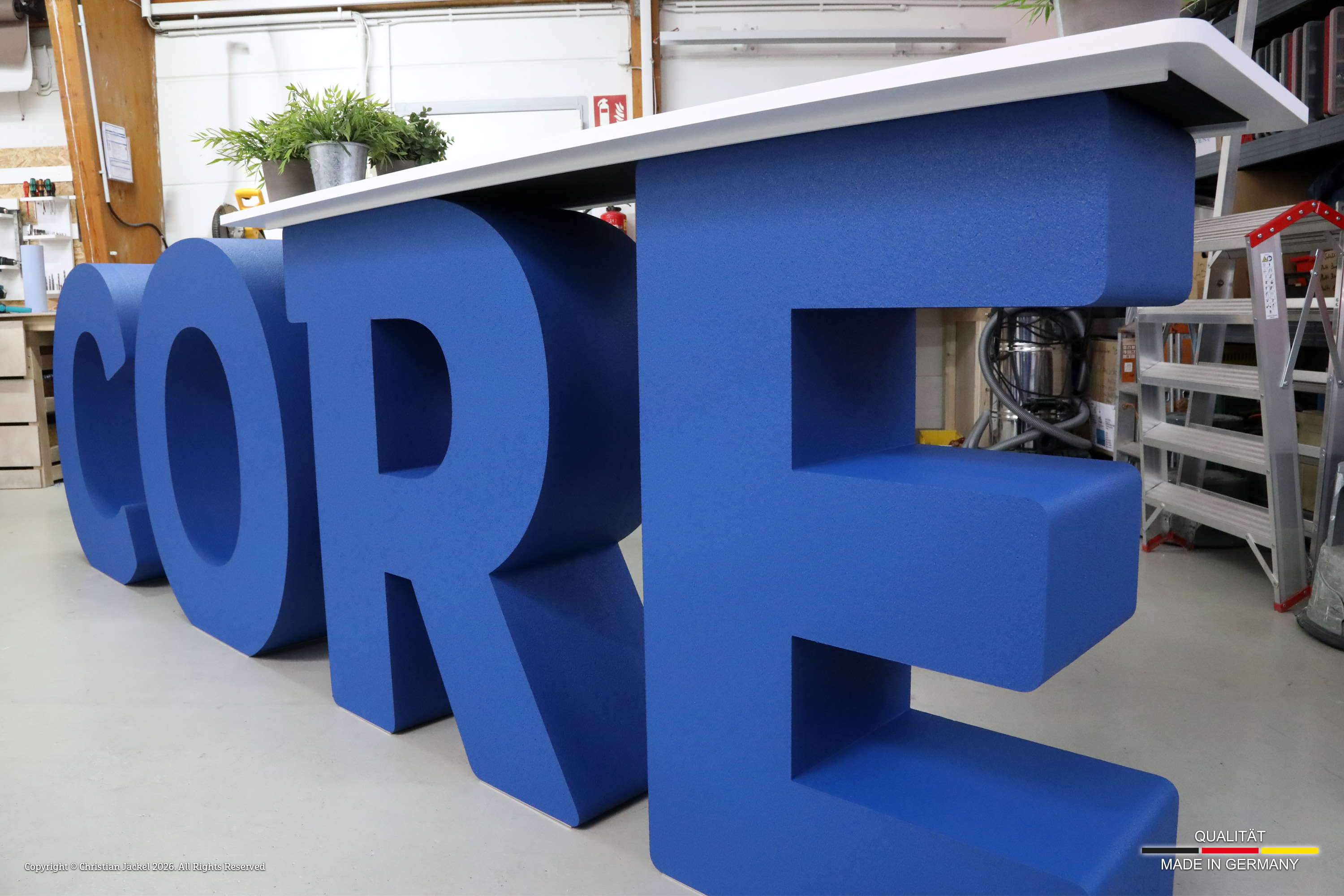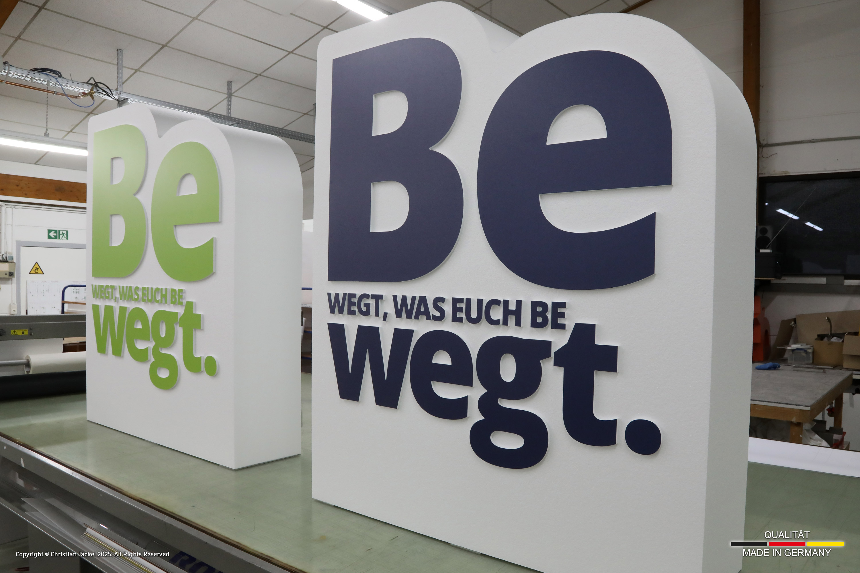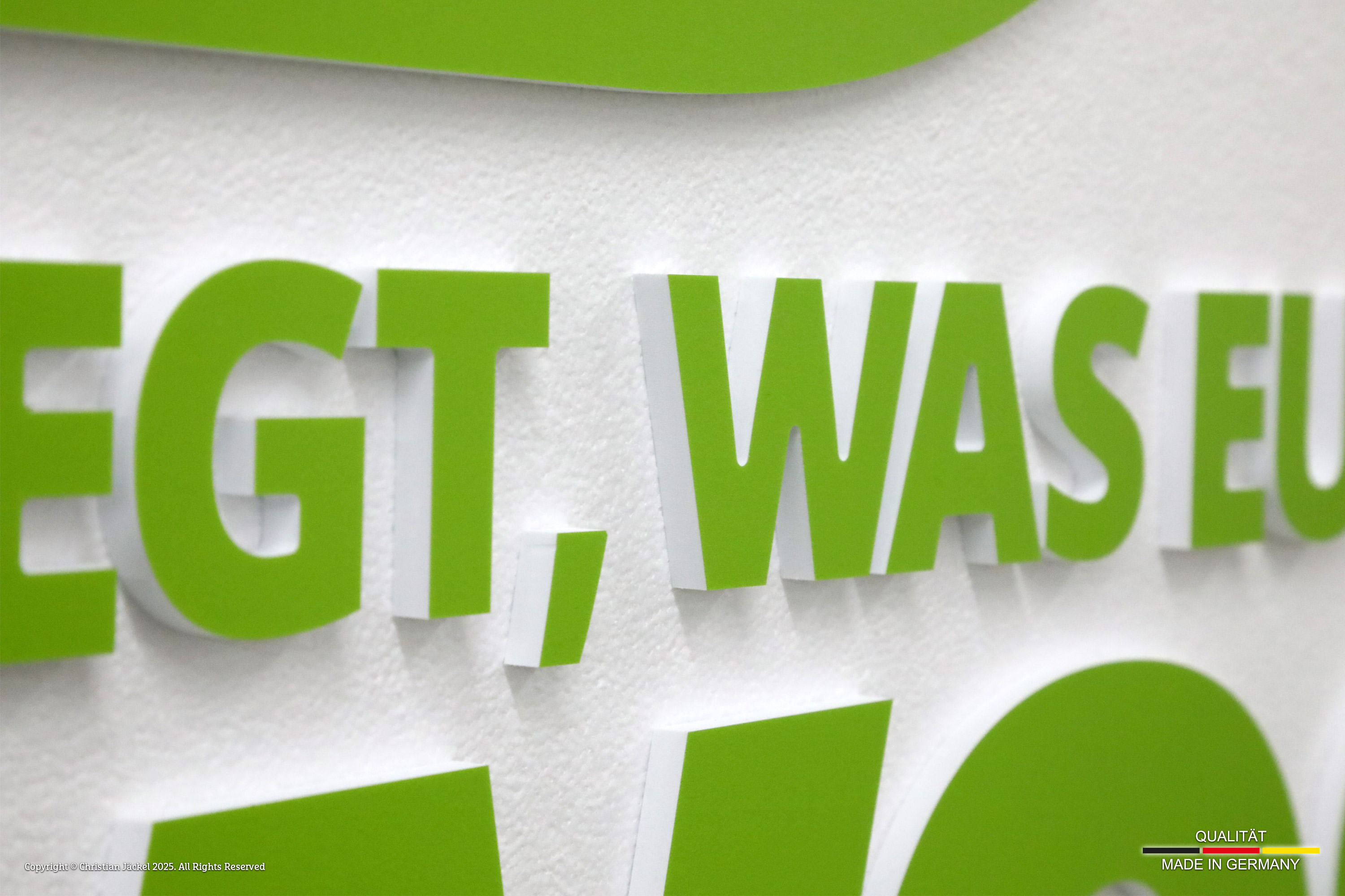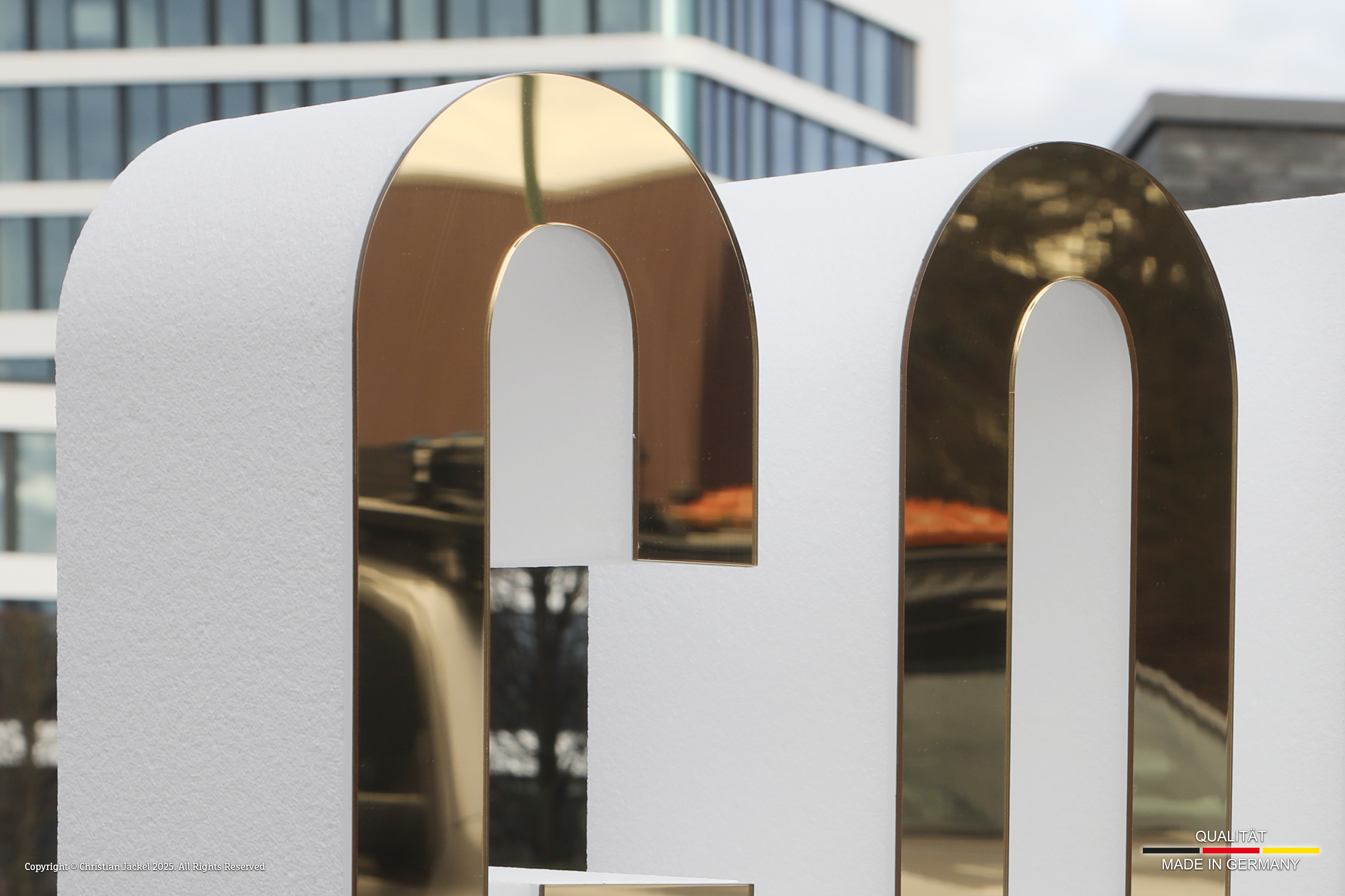 Sollten Sie Schriftzüge und Logos mit einer gleichmäßig glatten Oberfläche suchen, kämen auch Buchstaben aus Styrodur in Frage. Diese können allerdings nur bis zu einer Größe von 1.230 x 580 x 100 mm produziert werden. Freistehende Logos und Aufsteller in XXL finden Sie unter Stehende Buchstaben aus Styropor und Stehende Buchstaben aus Styrodur. Unser Styropor ist schwerentflammbar (B1 / DIN 4102), nicht abtropfend, nicht toxisch und damit bestens geeignet für die Verwendung auf Messen oder Events. Mit üblichem Styropor aus Baumärkten oder dem Verpackungsbereich ist dieses nicht zu vergleichen.