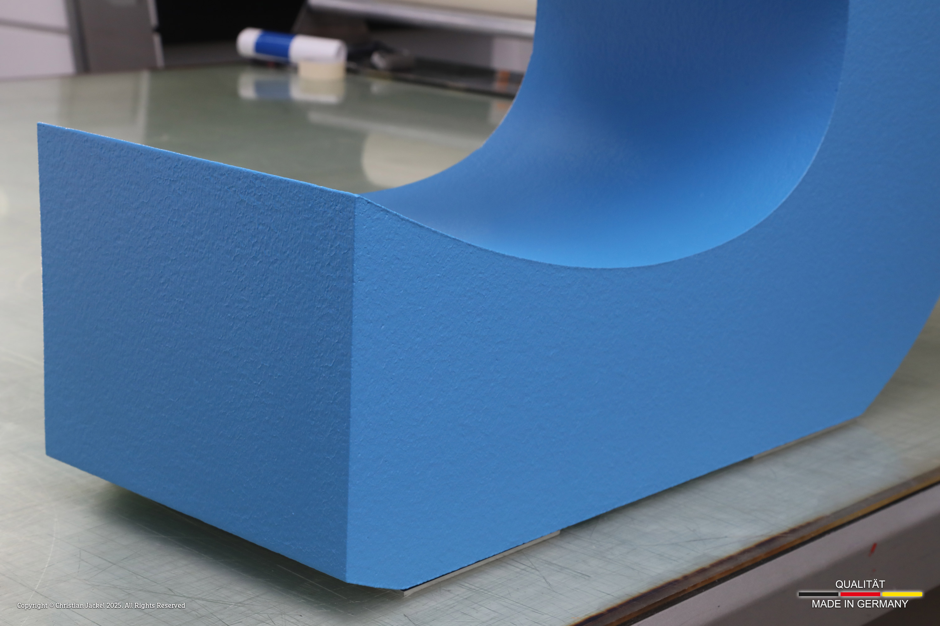 EPS ist ein sehr leichtes, grobporiges Material (Polystyrol), das sich gut für die Herstellung von 3D-Buchstaben in Übergrößen eignet. Die Materialstärke ist dank einer Heißdraht-Schneidemaschine variabel, die Blockgröße beträgt max. 2.000 x 1.250 x 1.000 mm. Da Styropor eigentlich als Dämmmaterial im Bauwesen verwendet wird, ist es auch nach einer Lackierung mit Dispersionsfarbe bestens für den Außenbereich geeignet. Styropor entspricht den Anforderungen der Brandschutzklasse B1 (schwer entflammbar).