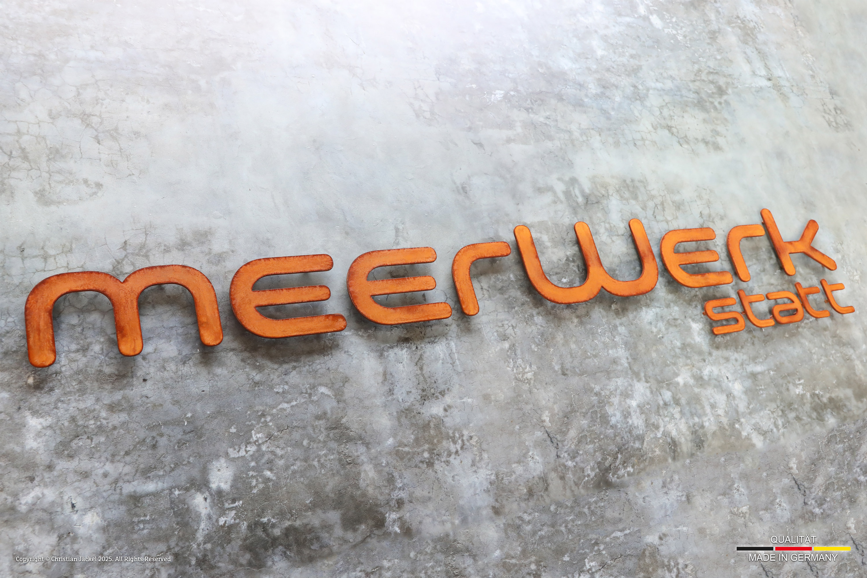 Buchstaben aus Cortenstahl mit edler Rostpatina. Nicht Brennbar (Baustoffklasse A1 / EN 13501-1).- 2 mm Stärke