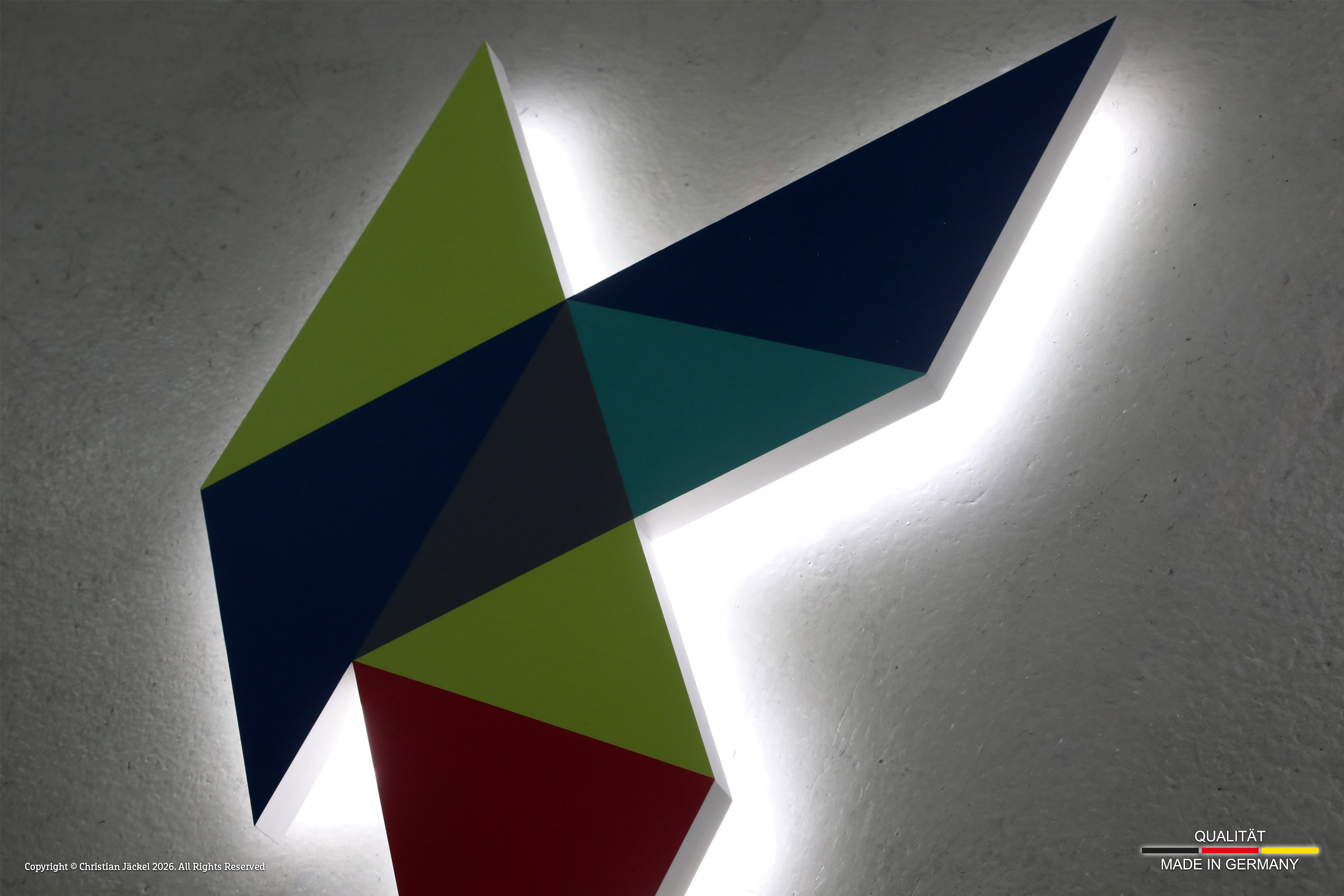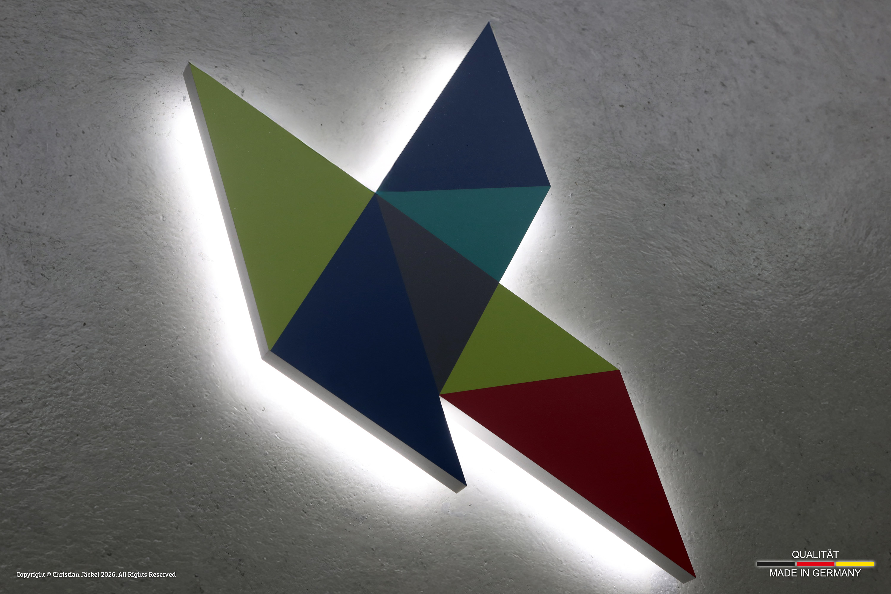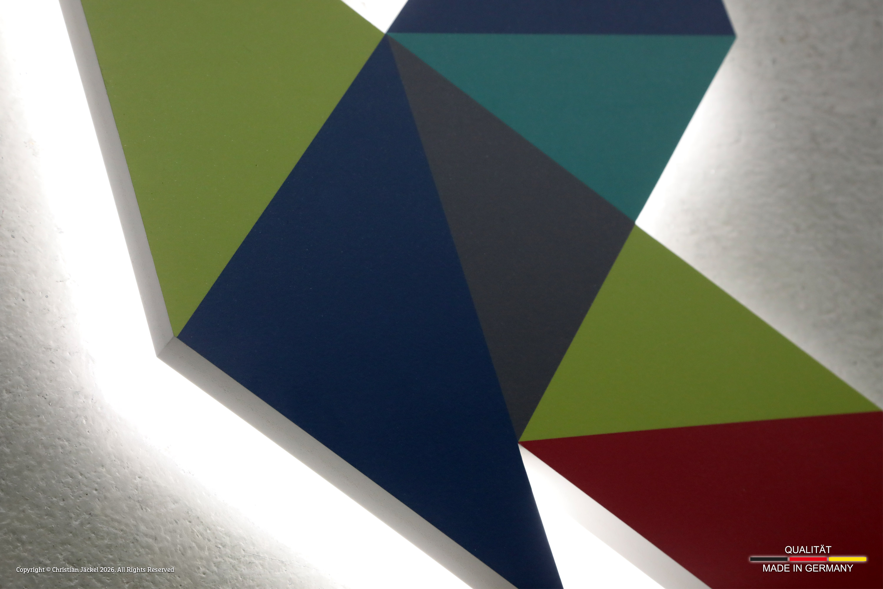 Der nach hinten leuchtende LED-Buchstabe besteht aus massivem Kömacel (PVC-Hartschaum) und kann in allen Standard-RAL- und NCS Farben (matt) lackiert werden. Durch das Einlegen der besonders kleinen LEDs in eine rückseitig eingefräste Nut, sind diese von der Seite nicht zu sehen. Der geringen Abstand der LEDs sorgt für eine gleichmäßigere Ausleuchtung. LED-Buchstaben und LED-Logos können in nahezu jeder Form gefertigt werden.