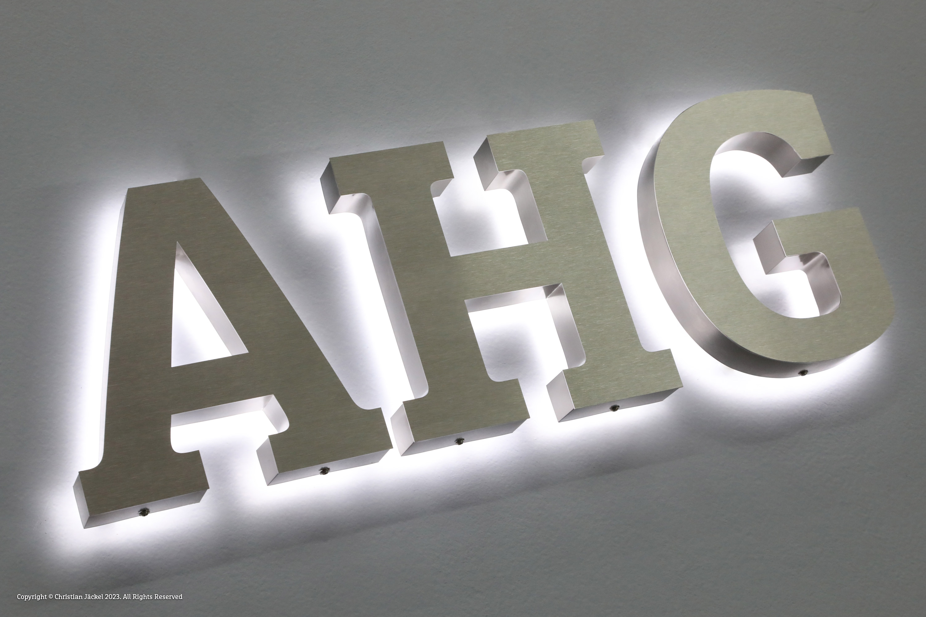 Ein großer Vorteil dieser Ausführung und Montage ist, dass die Leuchtbuchstaben ohne störenden Montagerahmen besonders gut zur Geltung kommen. Gerade bei Tag, wenn die Beleuchtung der Buchstaben nicht den Focus auf sich zieht, ist diese Montageart optisch einer Montage mit einer Rahmenkonstruktion vorzuziehen. Der Abstand zur Wand kann durch die Größe der Distanzröhrchen bestimmt werden. In der Regel sind unsere Leuchtbuchstaben mit 20 mm oder 30 mm Distanzstücken ausgerüstet.