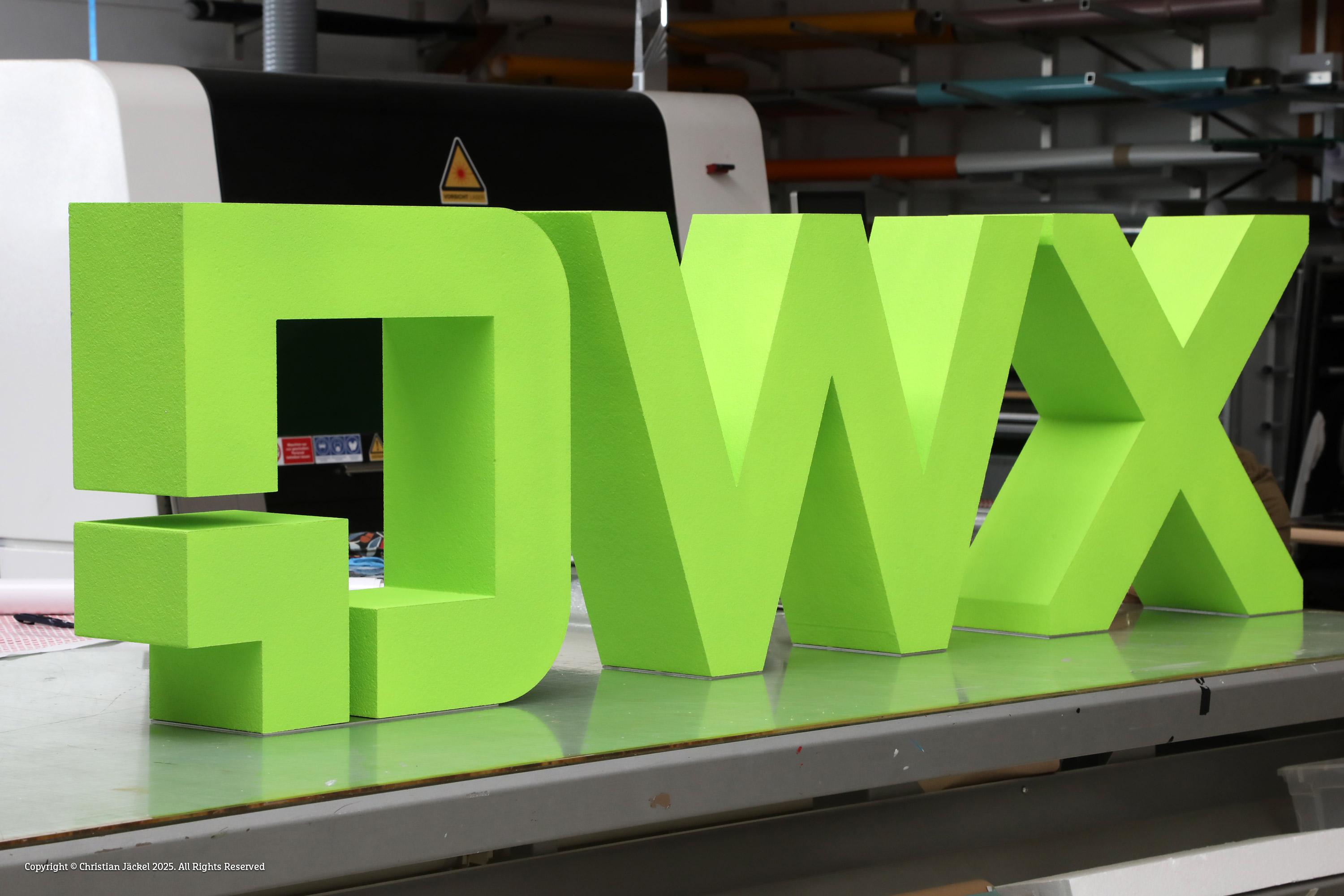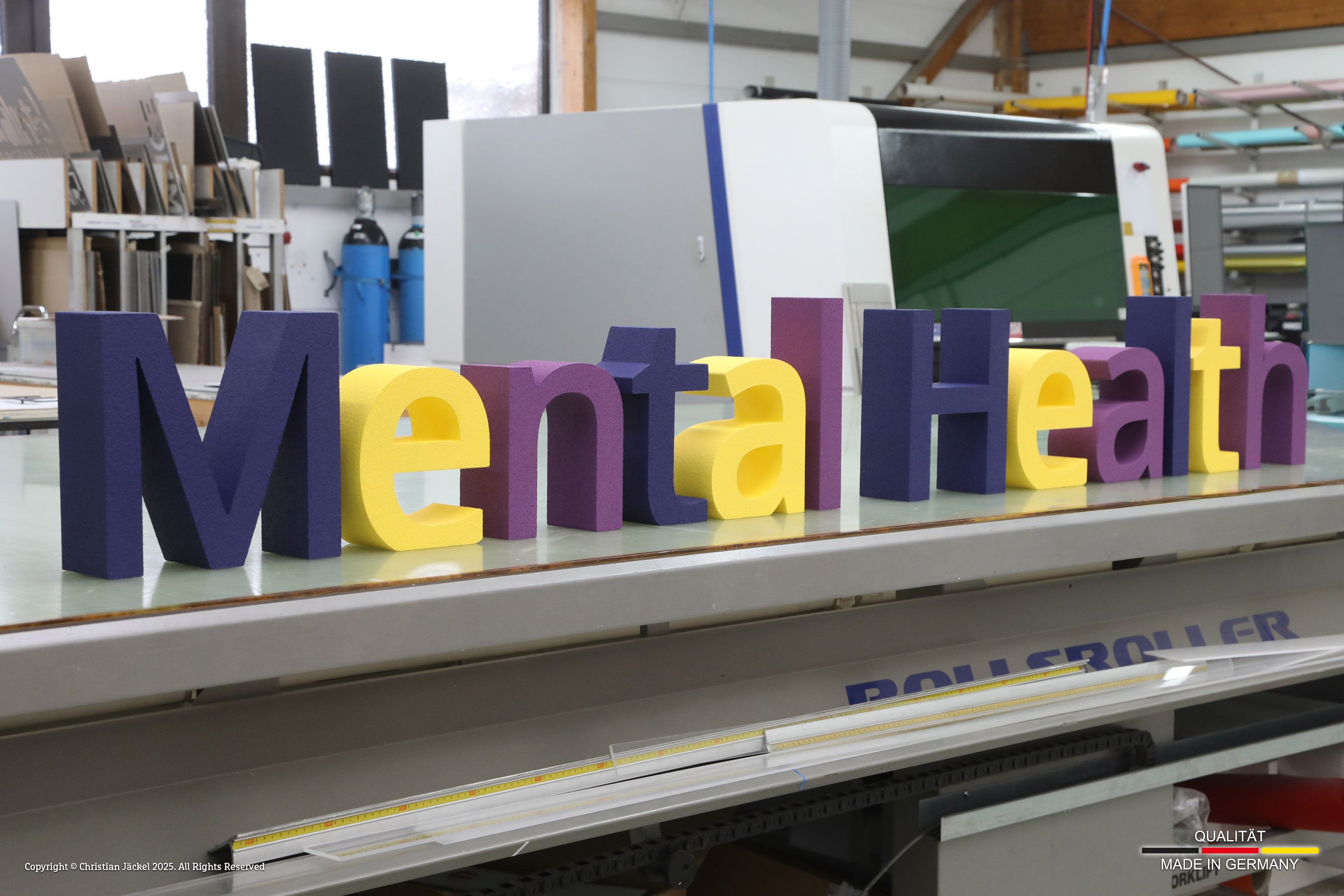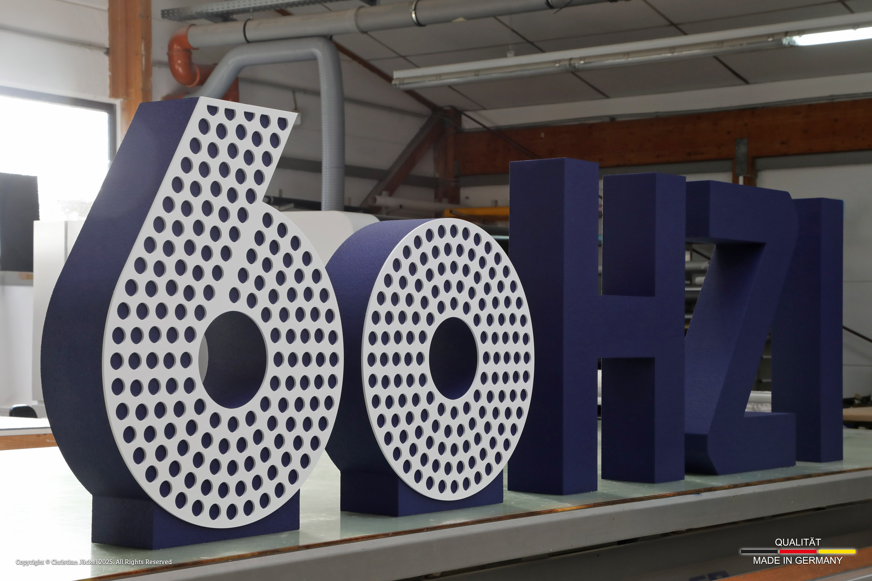 Styroporbuchstaben finden sehr oft Verwendung bei Messen & Veranstaltungen. Die Buchstaben werden aus Styroporblöcken von max. 2.000 x 1.250 x 1.000 mm hergestellt. Per Heißdrahtschneidemaschine erfolgt bei uns der Zuschnitt. Auch Formen mit Löchern (Buchstabennegative) z.B. ein „B“ können wir mit Hilfe eines speziellen Produktionsverfahrens umsetzen ohne sichtbare Einschnitte im Material zu hinterlassen (monolithischer Schnitt). Maximale Buchstabentiefe 500 mm.