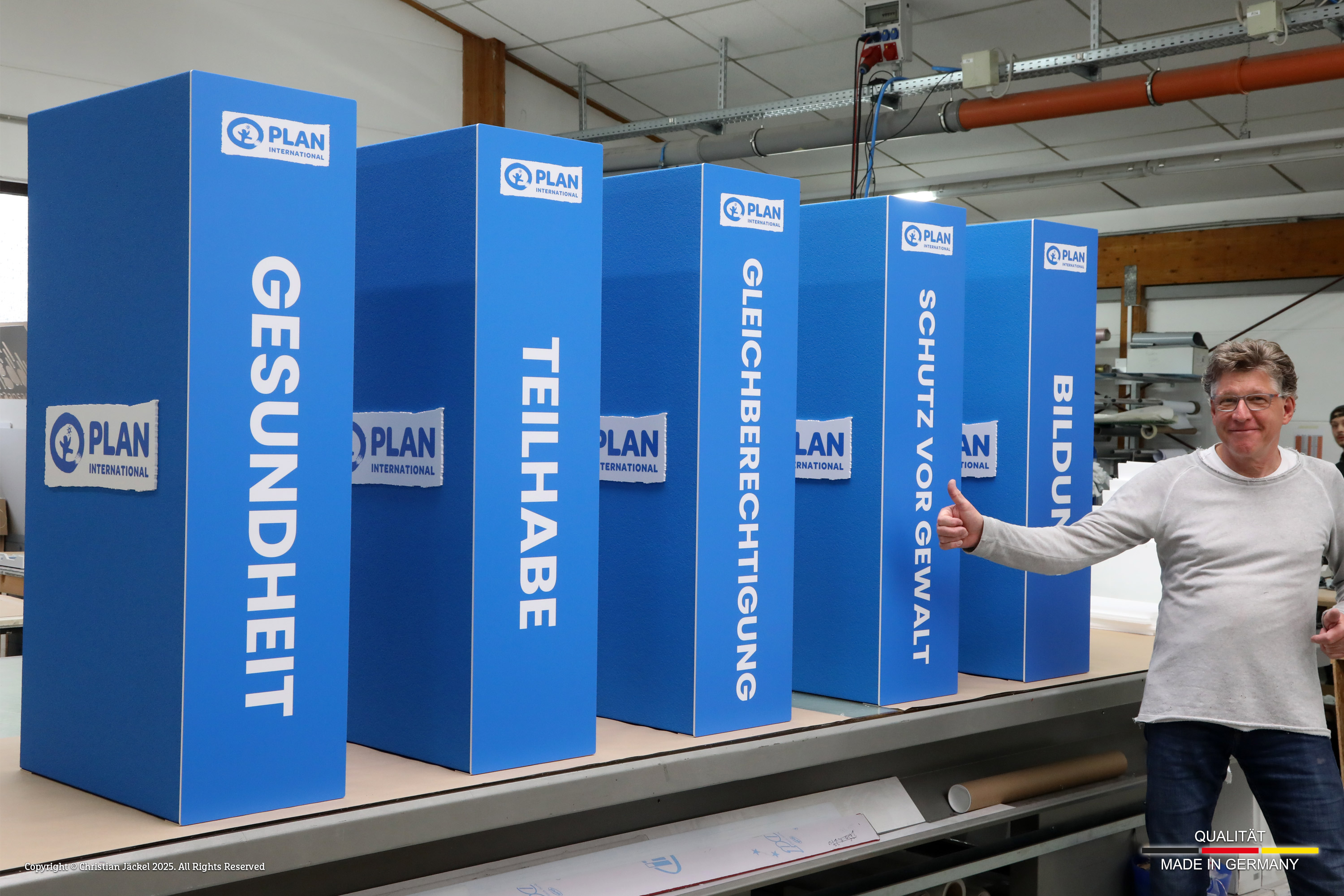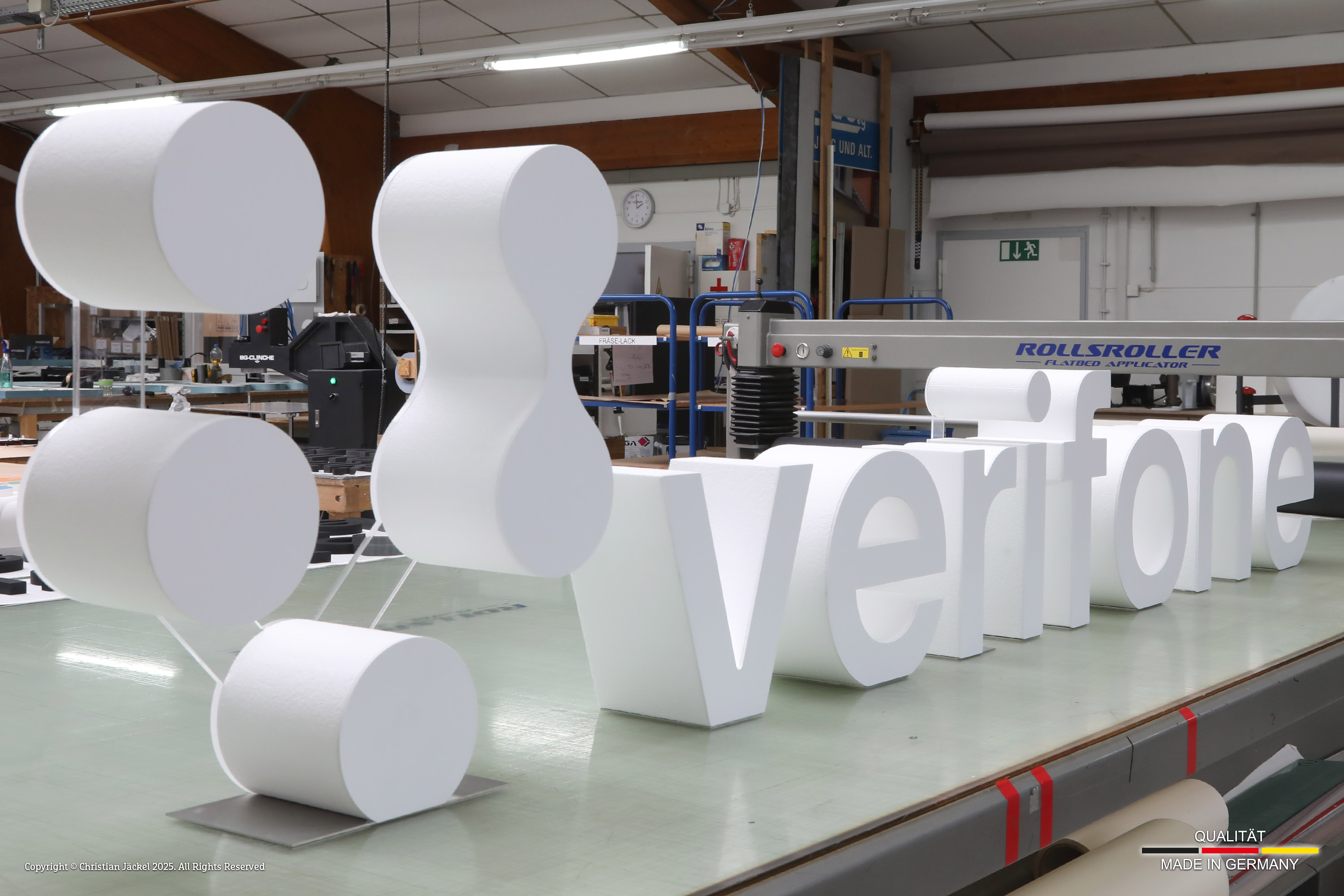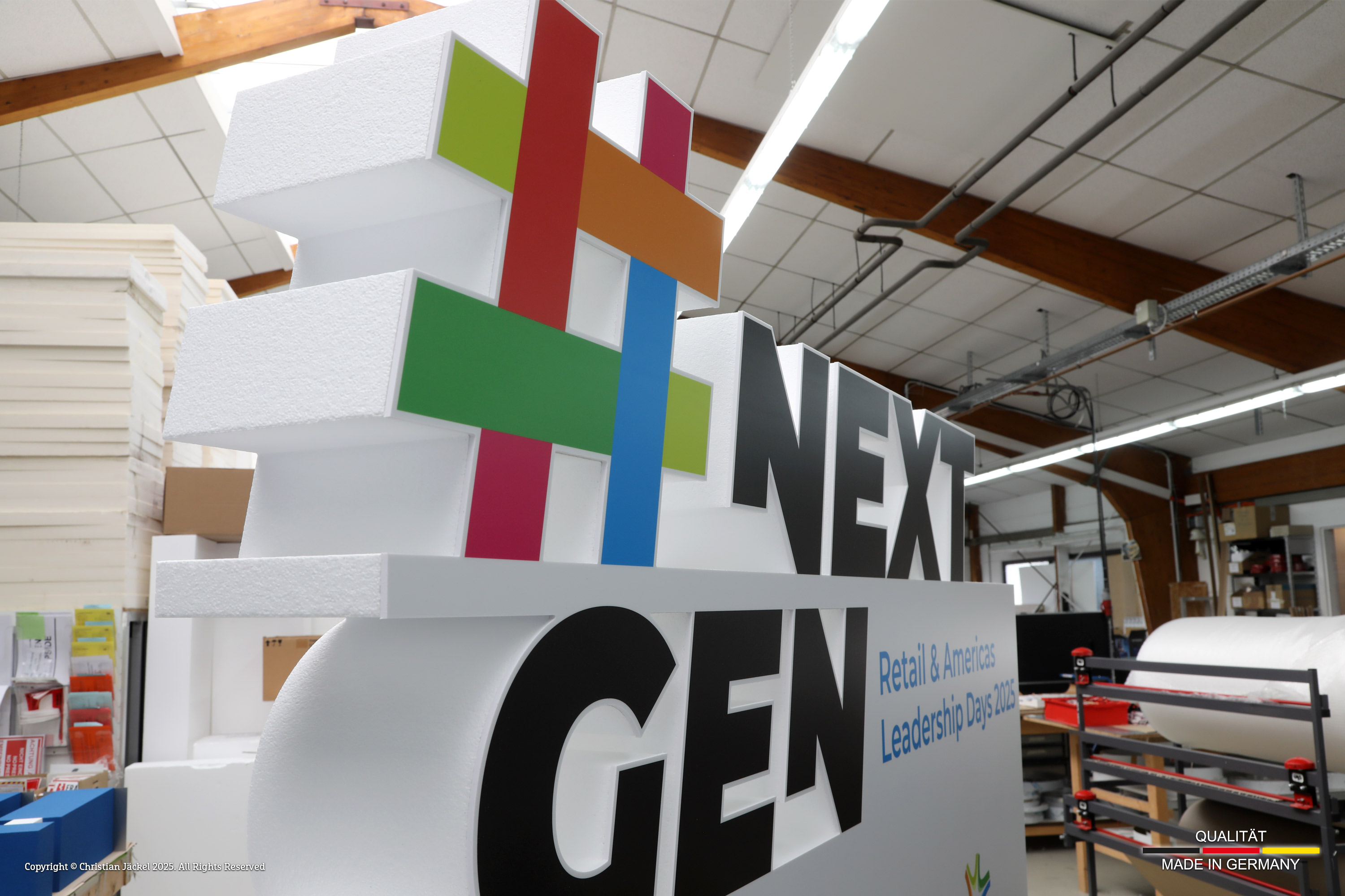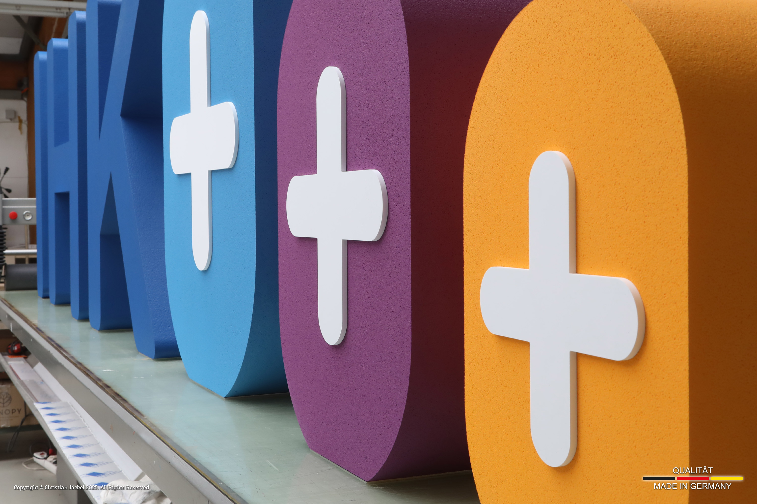 Styroporbuchstaben finden sehr oft Verwendung bei Messen & Veranstaltungen. Die Buchstaben werden aus Styroporblöcken von max. 2.000 x 1.250 x 1.000 mm hergestellt. Per Heißdrahtschneidemaschine erfolgt bei uns der Zuschnitt. Auch Formen mit Löchern (Buchstabennegative) z.B. ein „B“ können wir mit Hilfe eines speziellen Produktionsverfahrens umsetzen ohne sichtbare Einschnitte im Material zu hinterlassen (monolithischer Schnitt). Maximale Buchstabentiefe 500 mm.