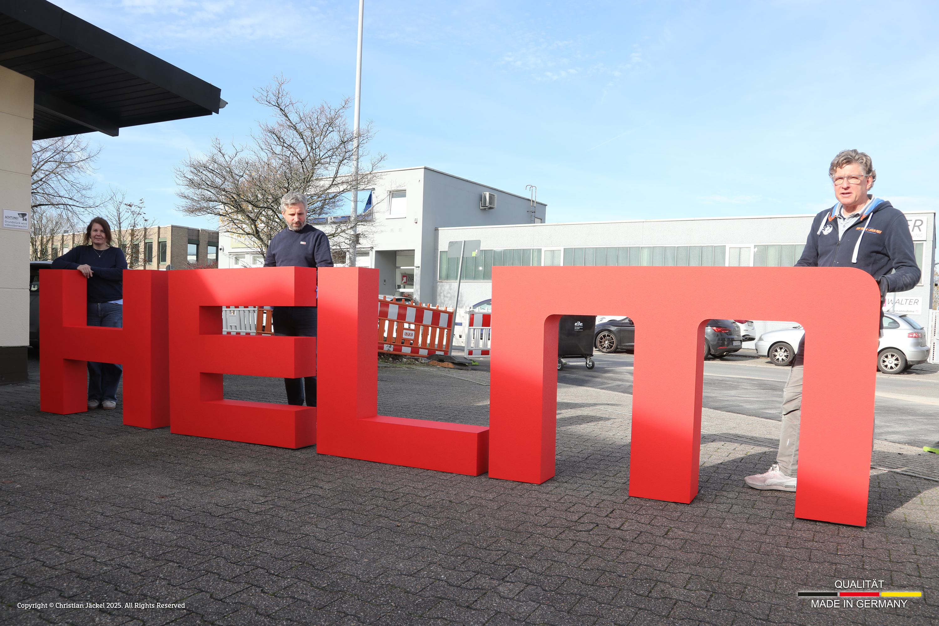 Um einen noch besseren Stand gewährleisten zu können, rüsten wir die freistehenden Buchstaben auf Wunsch mit Sockelplatten (Standfüssen) aus. Diese können aus verschiedenen Materialien gefertigt werden. Hochwertige Klettbänder von 3M ermöglichen einen schnellen Aufbau der Buchstaben und sorgen für einen guten Verbund zwischen Buchstabe und Sockel.