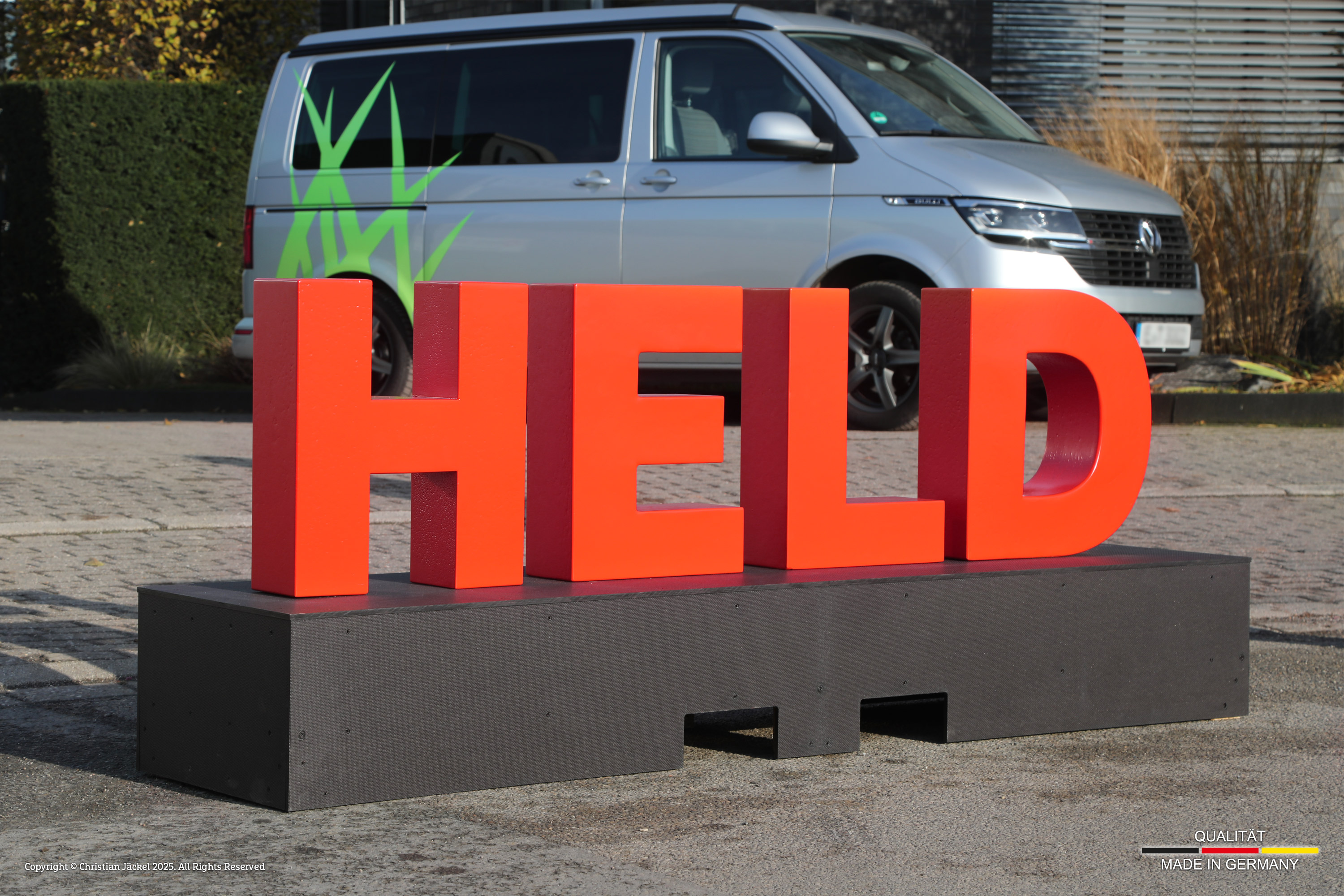 Als Hersteller und Produzent von hochwertigen 3D-Buchstaben und Logos fertigen wir auch robuste stehende Buchstaben, Logos und Zahlen in XXL für den dauerhaften Ausseneinsatz wie für Selfie-Point oder Fotospot. Bei diesen stehenden Reliefbuchstaben kommen ausschließlich hochwertige Materialien zum Einsatz, die auch einer langfristigen Bewitterung standhalten. Die 3D-Objekte werden in nahezu jeder gewünschten Tiefe gefertigt und werden anschließend nach RAL oder NCS matt lackiert. Die maximale Buchstabengröße solte hierbei eine Höhe von 150 cm möglichst nicht überschreiten.